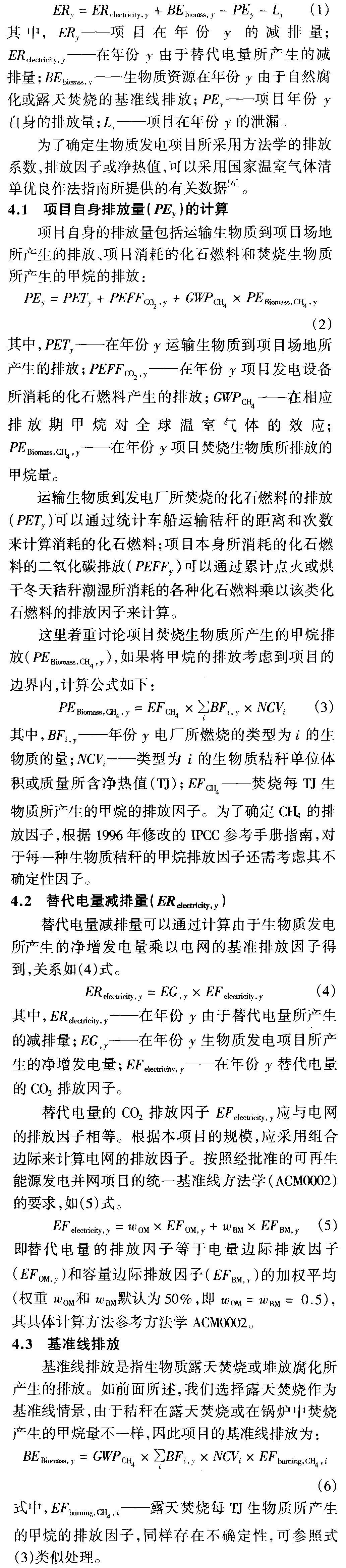 摘要:系統(tǒng)討論了清潔發(fā)展機(jī)制(CDM)應(yīng)用于大規(guī)模生物質(zhì)秸稈發(fā)電項(xiàng)目中的關(guān)鍵問題,從方法學(xué)適用、項(xiàng)目的額外性、基準(zhǔn)線確定到減排量計(jì)算和項(xiàng)目經(jīng)濟(jì)性等方面進(jìn)行了詳細(xì)的分析與討論。最后以我國最早開展的如東25MW秸稈發(fā)電項(xiàng)目為例,給出了計(jì)算結(jié)果并進(jìn)行了分析,得到了對于該類項(xiàng)目具有現(xiàn)實(shí)指導(dǎo)意義的結(jié)論,為在我國開展大規(guī)模生物質(zhì)利用項(xiàng)目提供了理論和決策依據(jù)。 0背景 清潔發(fā)展機(jī)制(Clean Development Mechnism-CDM)是《京都議定書》規(guī)定的3種溫室氣體減排機(jī)制之一,也是唯一的發(fā)展中國家參與溫室氣體減排的機(jī)制。CDM是一種雙贏機(jī)制,通過CDM機(jī)制,發(fā)達(dá)國家提供額外的資金和先進(jìn)技術(shù)設(shè)備幫助發(fā)展中國家實(shí)現(xiàn)可持續(xù)發(fā)展;同時協(xié)助發(fā)達(dá)國家履行其規(guī)定的定量化減排的義務(wù)。 生物質(zhì)能利用項(xiàng)目屬于我國政府鼓勵優(yōu)先開展的CDM領(lǐng)域,但我國至今還沒有一個生物質(zhì)發(fā)電CDM項(xiàng)目得到聯(lián)合國CDM執(zhí)行理事會的批準(zhǔn)。一方面由于開發(fā)生物質(zhì)發(fā)電項(xiàng)目本身投資成本高,國內(nèi)技術(shù)還不成熟,無法大規(guī)模發(fā)展,且在我國開展生物質(zhì)發(fā)電項(xiàng)目起步晚,因而目前實(shí)施的該類項(xiàng)目較少;另一方面開發(fā)該類CDM項(xiàng)目的方法學(xué)比較復(fù)雜,特別是最新通過的統(tǒng)一方法學(xué)ACM0006比以前的方法學(xué)更復(fù)雜,規(guī)定更嚴(yán)格,結(jié)合我國的具體國情需要解決的關(guān)鍵問題更多。 江蘇如東25MW生物質(zhì)秸稈焚燒發(fā)電項(xiàng)目是我國第一個被國家發(fā)改委批準(zhǔn)立項(xiàng)的規(guī)?;镔|(zhì)新能源利用示范項(xiàng)目,得到了世界銀行的資助,將為開發(fā)農(nóng)村新的經(jīng)濟(jì)、消除田間焚燒秸稈的煙氣污染起到很好的示范作用。本文以該項(xiàng)目為案例,討論大規(guī)模生物質(zhì)發(fā)電項(xiàng)目開發(fā)成CDM項(xiàng)目所遇到的關(guān)鍵技術(shù)問題,并討論解決這些問題的方法。 1方法學(xué)適用問題 開發(fā)CDM項(xiàng)目首先需要選擇或者開發(fā)合適的方法學(xué),就15MW以上的生物質(zhì)發(fā)電項(xiàng)目而言,2005年11月之前的AM0004“避免生物質(zhì)無控焚燒的生物質(zhì)發(fā)電上網(wǎng)”方法學(xué)已被最新的方法學(xué)ACM0006“生物質(zhì)殘?jiān)l(fā)電上網(wǎng)統(tǒng)一方法學(xué)”替代,按照CDM執(zhí)行理事會的規(guī)定,新的項(xiàng)目必須采用最新方法學(xué)的原則,因此本文選擇方法學(xué)ACM0006作為江蘇省如東生物質(zhì)發(fā)電示范項(xiàng)目(后文簡稱“項(xiàng)目”)的基準(zhǔn)線方法學(xué),項(xiàng)目的基本條件如下:①如果沒有該項(xiàng)目,生物質(zhì)秸稈將被當(dāng)?shù)剞r(nóng)民露天焚燒,或者被長時間堆放直至腐化,從而導(dǎo)致溫室氣體的排放;②電廠所在地周圍有充足的秸稈資源,能保障電廠每年12個月運(yùn)行所需的燃料。這些秸稈在當(dāng)?shù)貨]有用來產(chǎn)生任何經(jīng)濟(jì)利益,且分布分散,需要收集后運(yùn)送到電廠;③該電廠的裝機(jī)容量對于整個江蘇省電網(wǎng)而言非常小,不會影響整個電網(wǎng)其他新建項(xiàng)目;④該電廠所在電網(wǎng)長期存在電力供應(yīng)緊張的局面,而且這種局面隨著江蘇省經(jīng)濟(jì)的快速發(fā)展而日益嚴(yán)峻。按江蘇省的GDP增加率為10%,電力需求年增加率為5%的比率計(jì)算,江蘇省目前每年新增容量還不能滿足電力發(fā)展的需求;⑤該項(xiàng)目規(guī)模很小(相對于整個華東電網(wǎng)),因此不會影響整個電網(wǎng)的平均排放因子;⑥電網(wǎng)的平均排放將按電量邊際排放因子以及容量邊際排放因子的組合計(jì)算,嚴(yán)格按呵再生能源發(fā)電上網(wǎng)的整合方法學(xué)ACM0002的規(guī)定來汁算項(xiàng)目減排量。以上條件滿足ACM0006方法學(xué)所必需的前提條件。 2項(xiàng)目額外性分析 判斷一個項(xiàng)目是否合適CDM項(xiàng)目,需要對項(xiàng)目進(jìn)行額外性分析。大規(guī)模生物質(zhì)焚燒發(fā)電項(xiàng)目在我國還缺少成熟的核心技術(shù)。如東生物質(zhì)項(xiàng)目是我國第一個規(guī)模化生物質(zhì)利用示范項(xiàng)目,所采用的關(guān)鍵設(shè)備(高溫高壓純燒秸稈的發(fā)電鍋爐及其配套的切草機(jī)和輸送機(jī))國內(nèi)尚不能生產(chǎn),需要引進(jìn)設(shè)備、消化技術(shù),同時還要克服與國產(chǎn)設(shè)備的配套帶來的性能不穩(wěn)定的風(fēng)險(xiǎn),因此項(xiàng)目具有明顯的技術(shù)額外性。 該項(xiàng)目將為引進(jìn)鍋爐設(shè)備額外投入6000萬元資金,僅此一項(xiàng)就增加了項(xiàng)目20%的成本。此外,秸稈的收購成本和運(yùn)輸打包成本約為300¥/t,而煤炭的收購成本400¥/t。考慮到2t秸稈約相當(dāng)于1t煤的熱值,生物質(zhì)原料成本高于煤炭因此,生物質(zhì)發(fā)電項(xiàng)目的電站投資和運(yùn)行成本都高于煤電。項(xiàng)目具有CDM項(xiàng)目所要求的經(jīng)濟(jì)額外性。 迄今為止,我國還沒有法律要求或框架